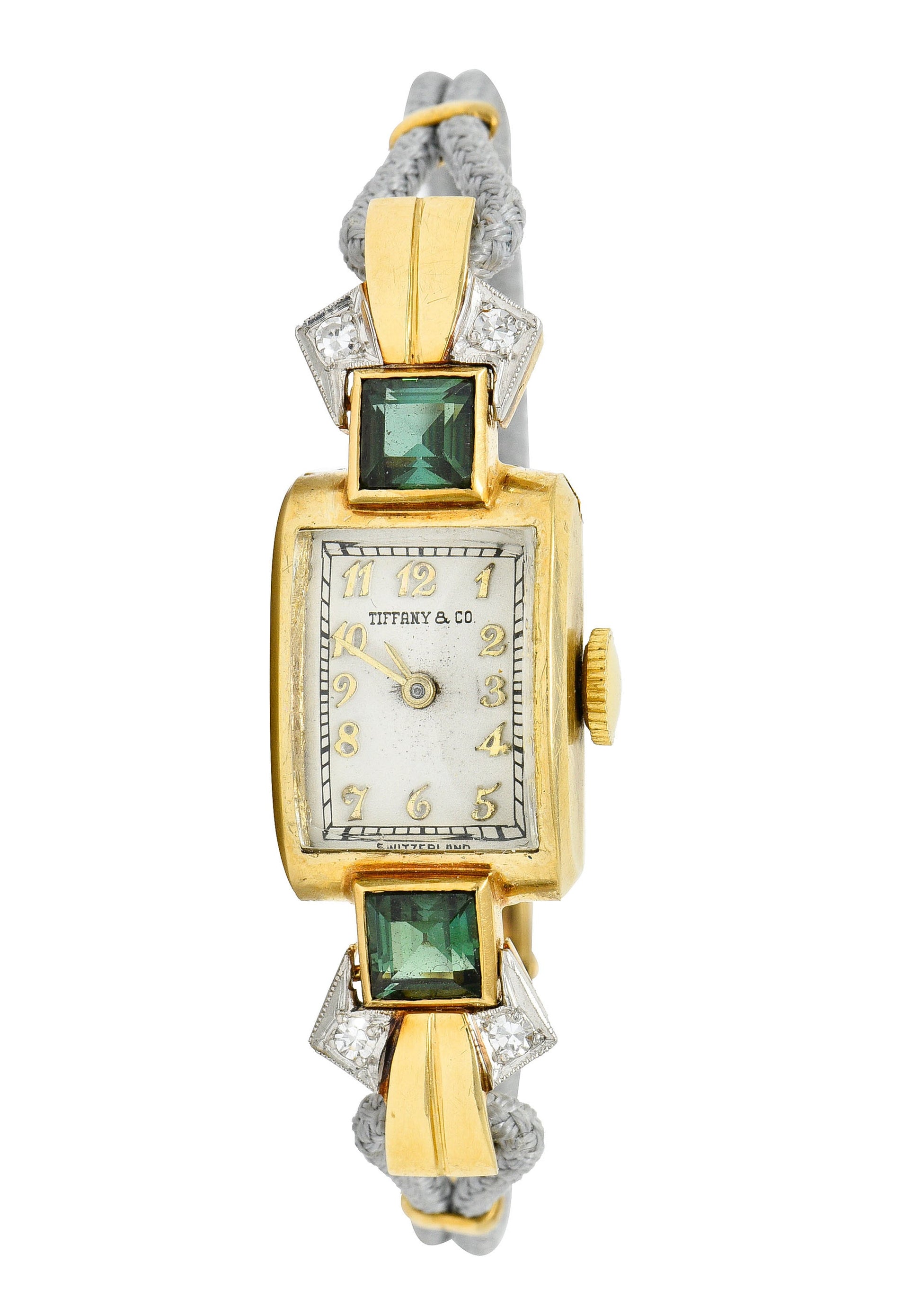 1941 Tiffany & Co. Green Tourmaline Diamond Platinum-Topped 14 Karat Gold Watch Bracelet