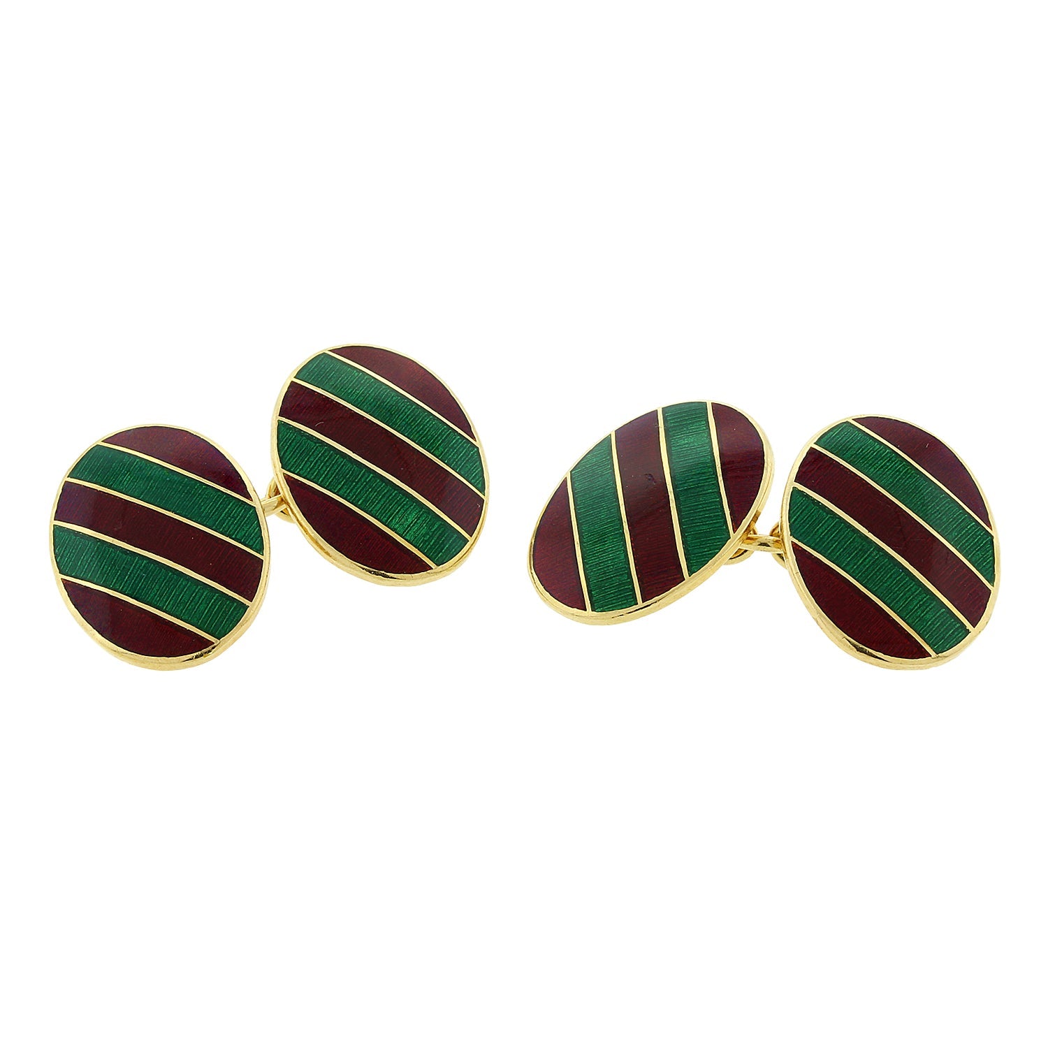 Tiffany & Co. Red and Green Enamel Gold Cufflinks